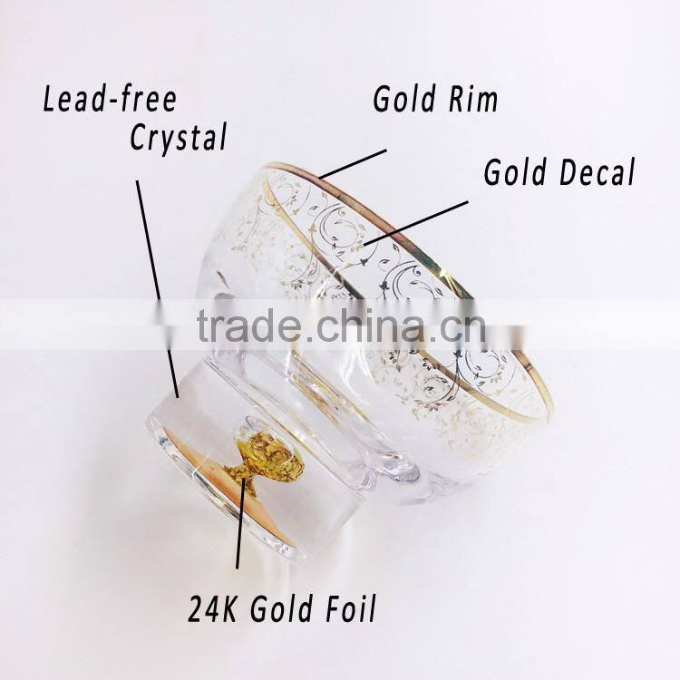 Lead-free Crystal Gold-Rimmed Tableware Bottom 24K Gold Foil Filled