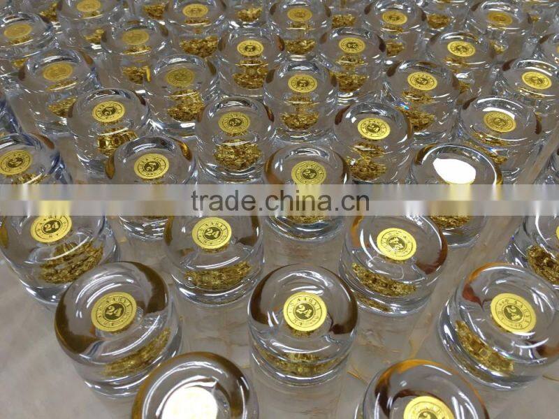 In the thick bottom, we fill in 24K gold foil. When you drink wine, you can see the beautiful floating of the golden flakes.