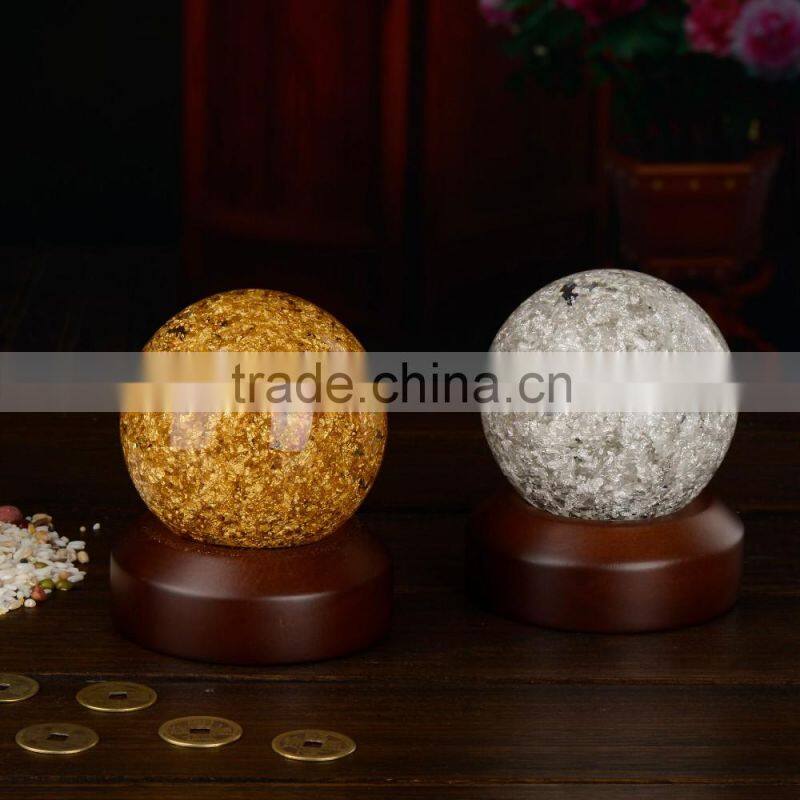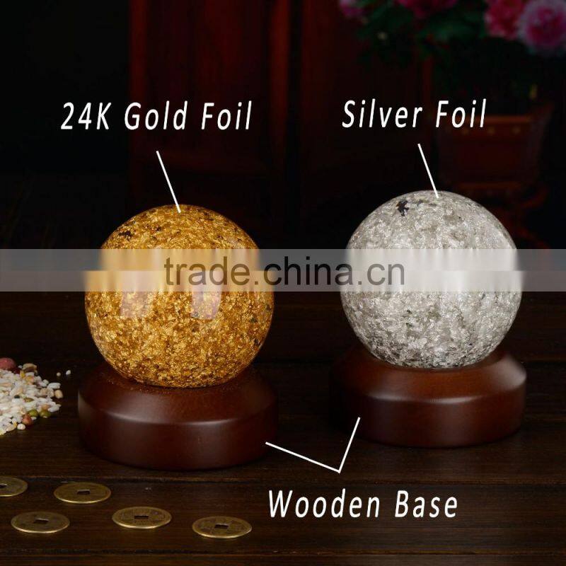 Gold Foil Crystal Ball Wooden Base Snow Globe Gift