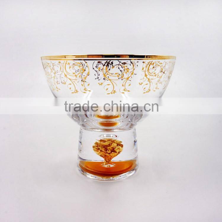 Pure Gold Filled Inside Stem Drinking Wine Glass Cup Crystal Glassware Water Glasses