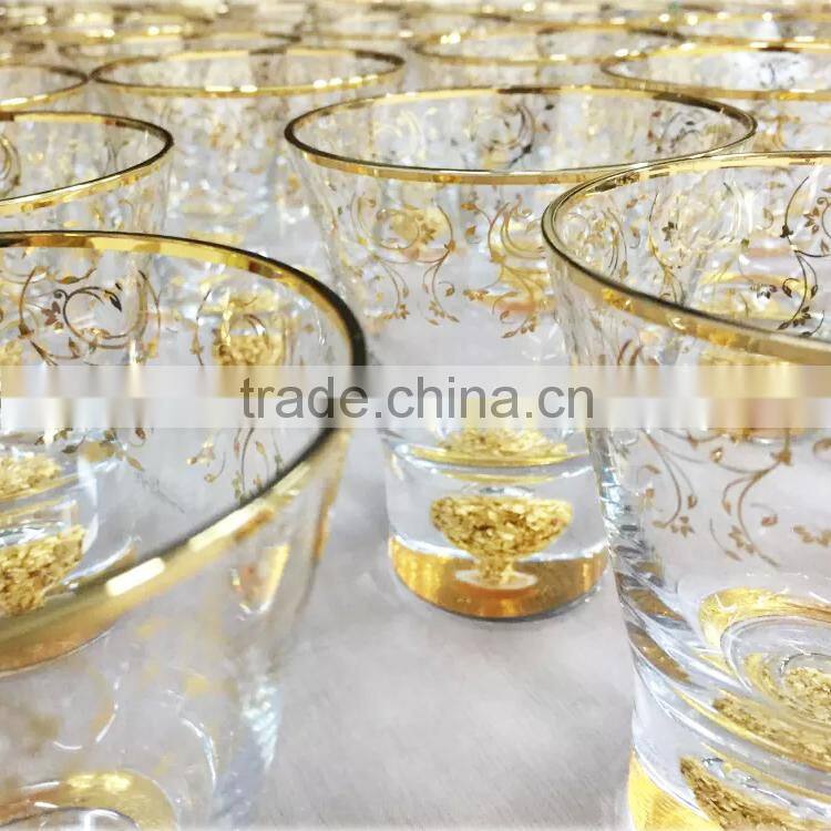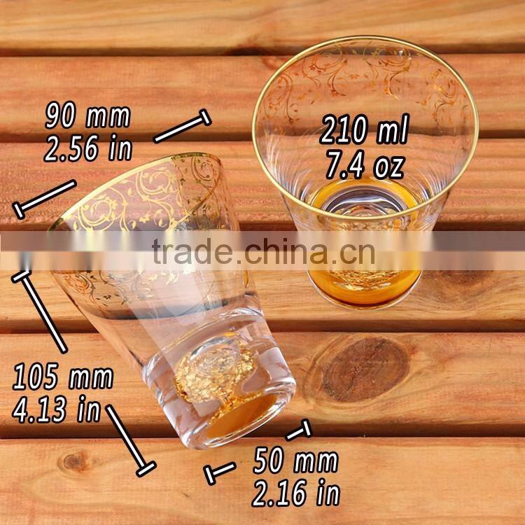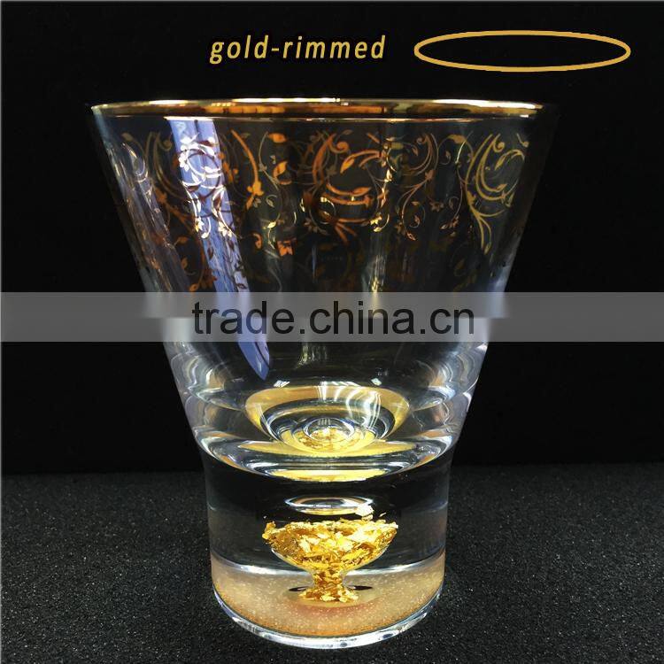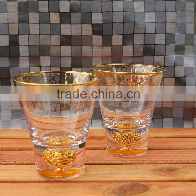 New Designed Crystal Square Shaped Whiskey Glassware Gold Tumbler Glass