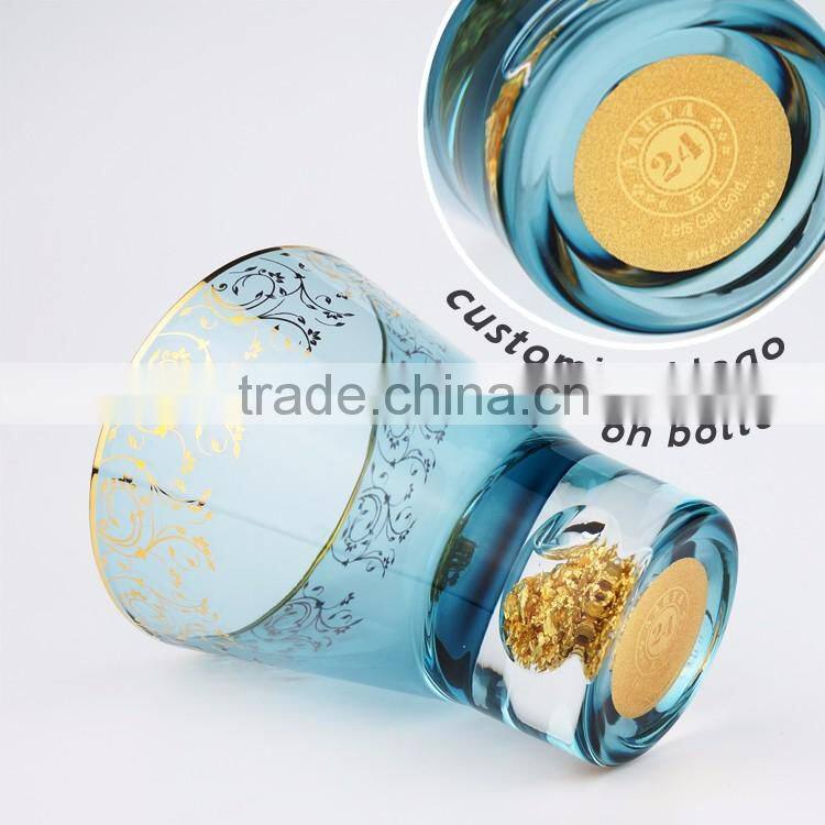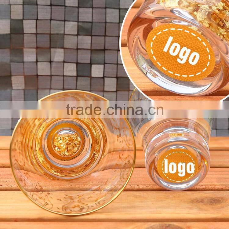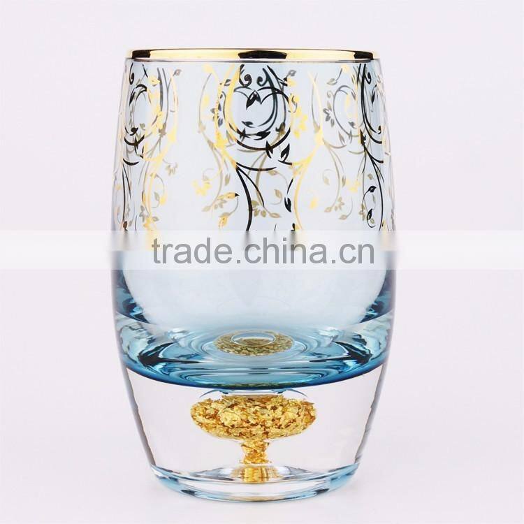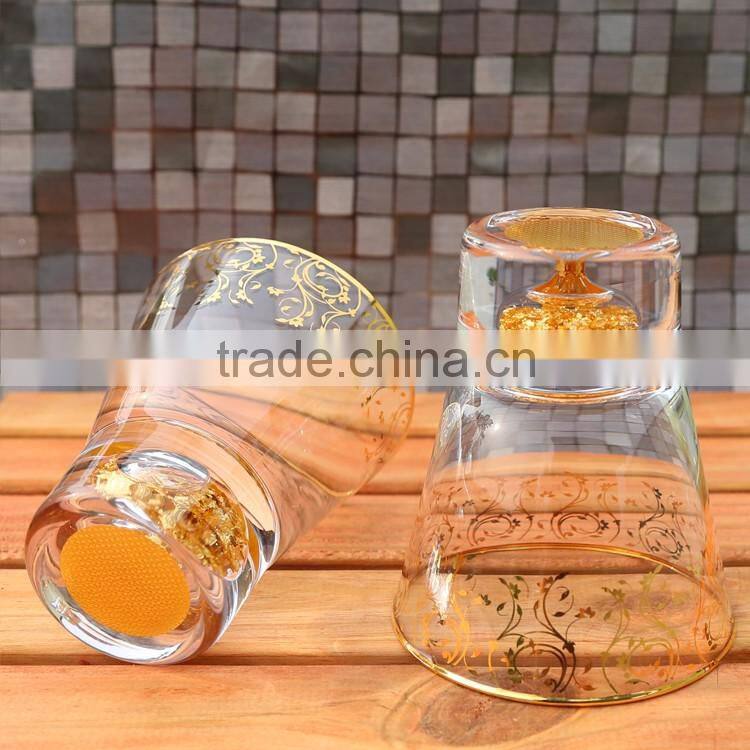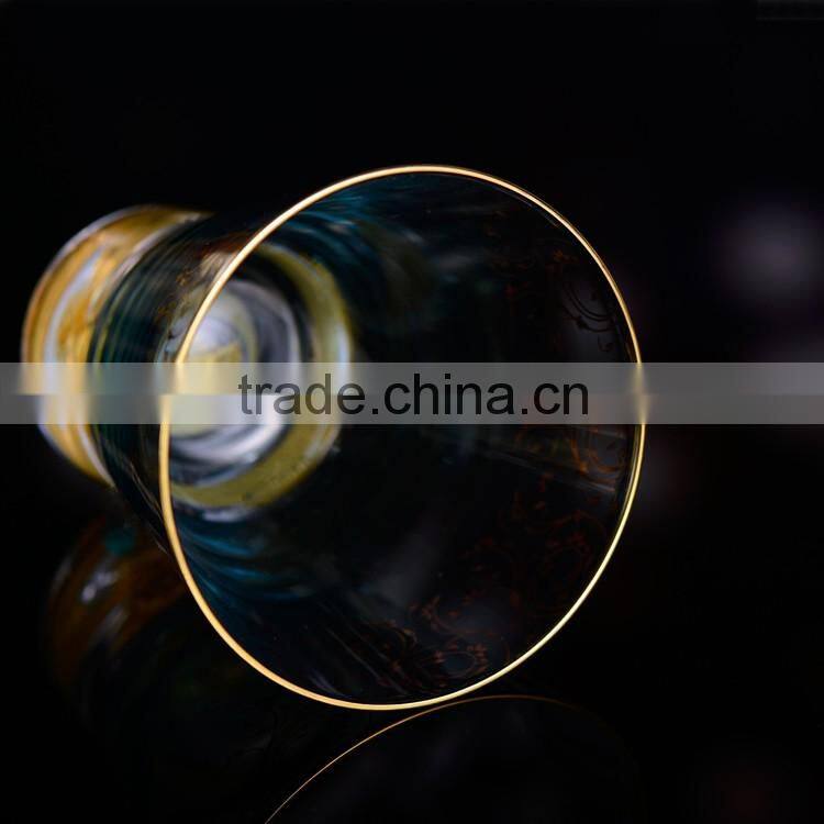 Pure Gold Filled Inside Stem Drinking Wine Glass Cup Crystal Glassware Water Glasses