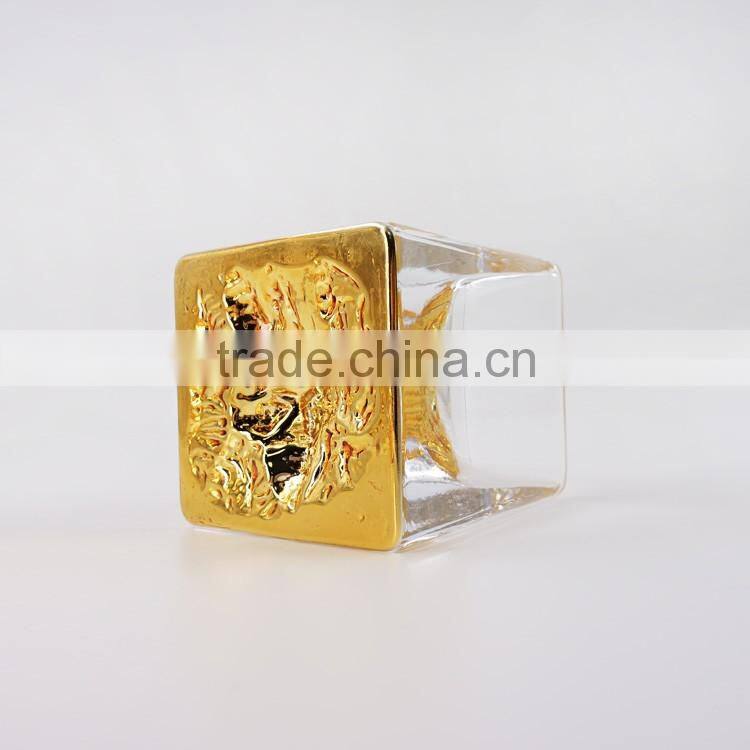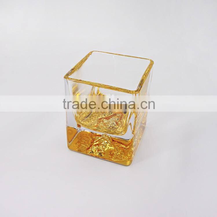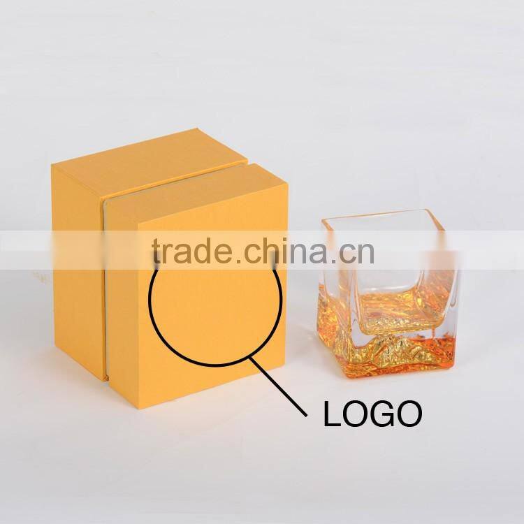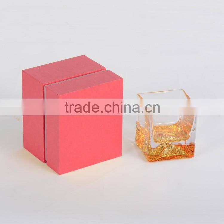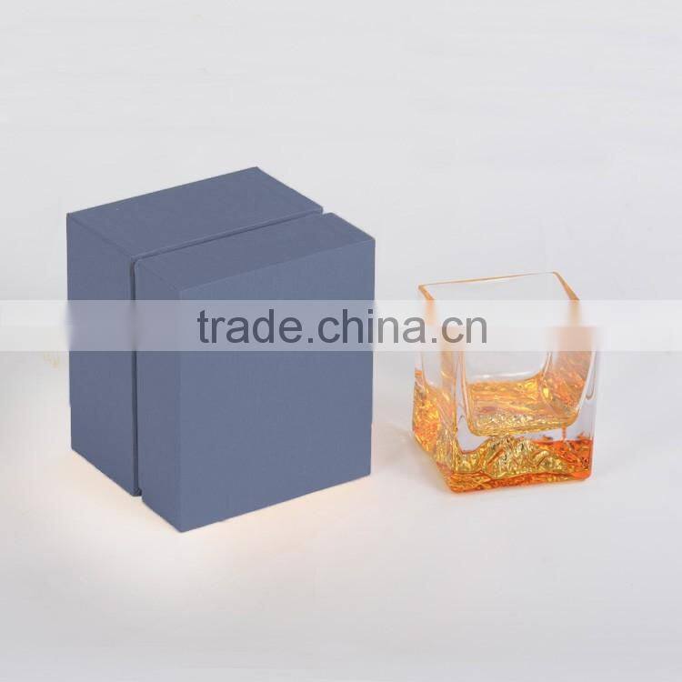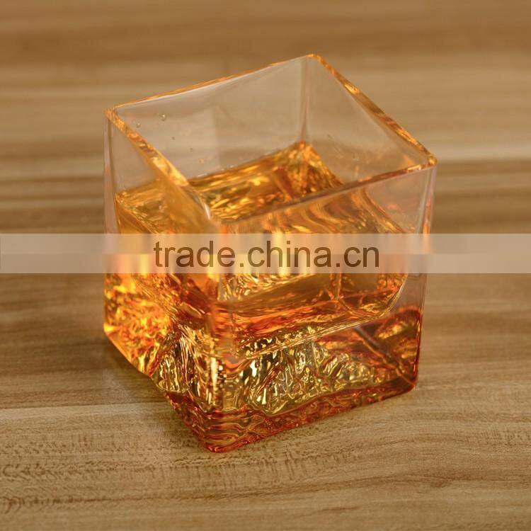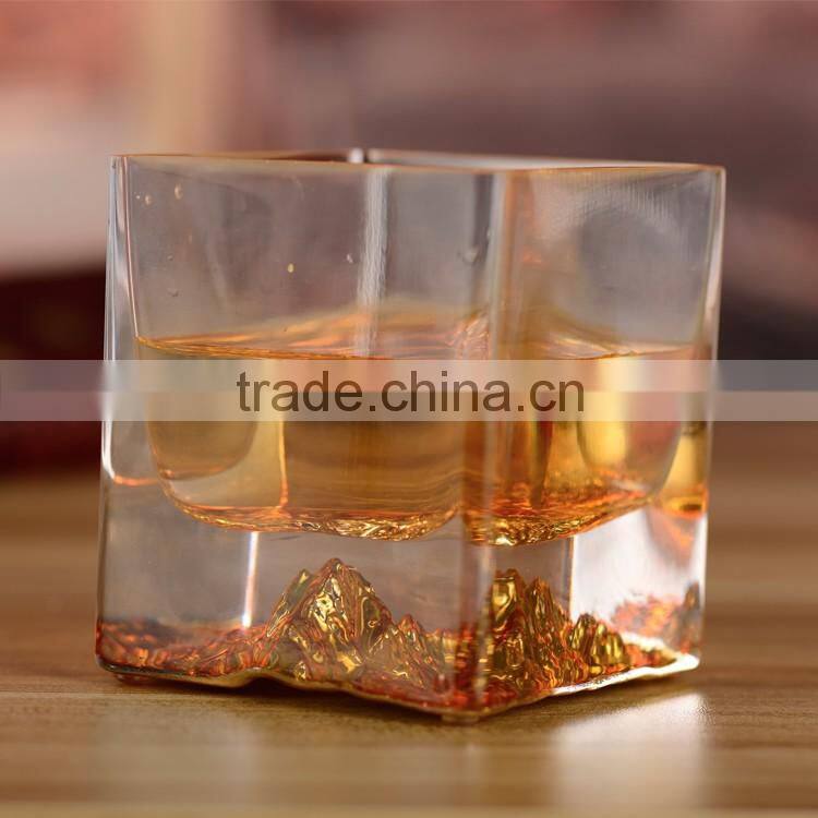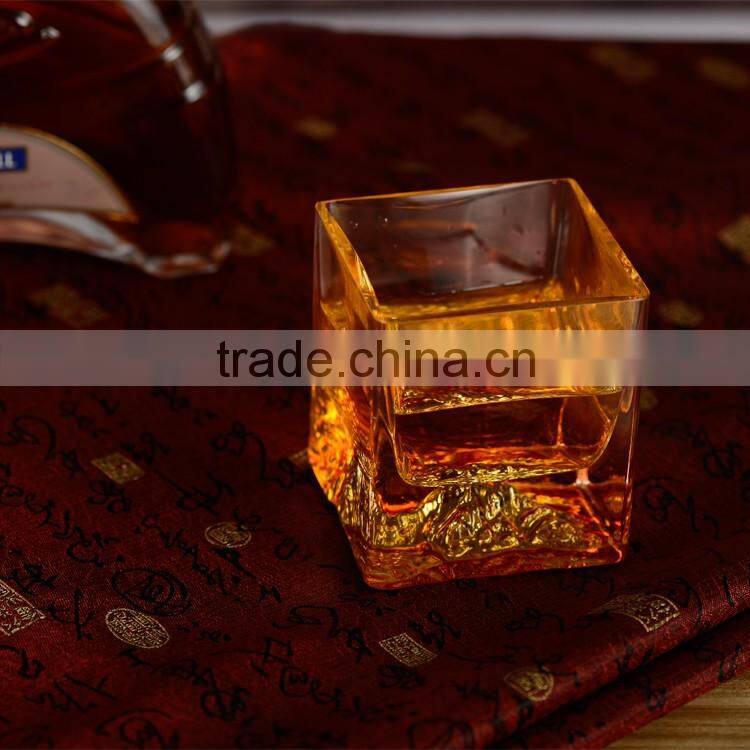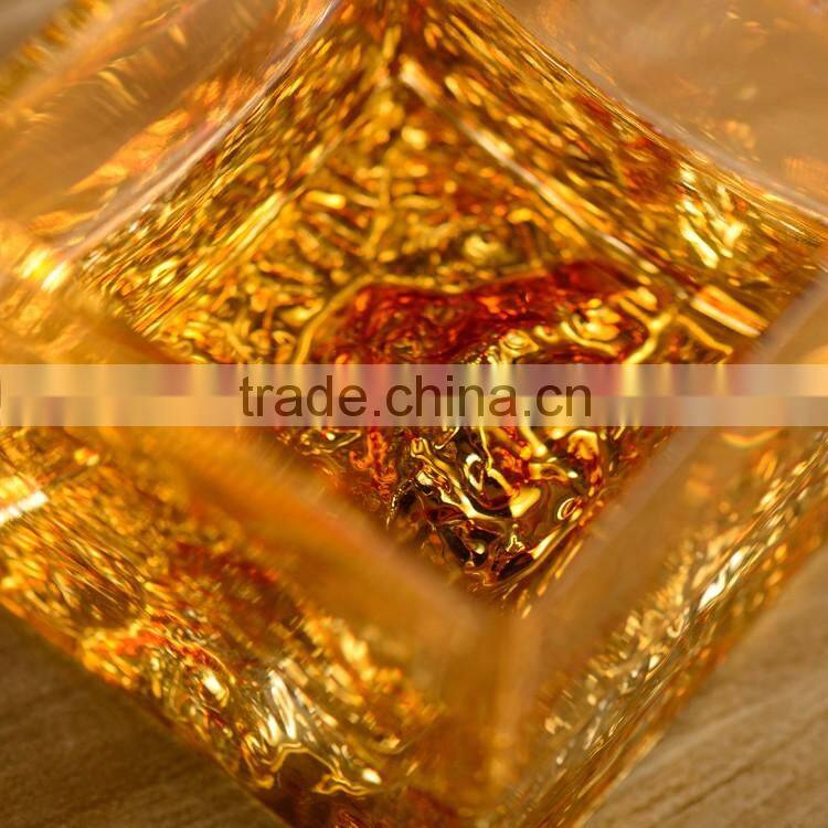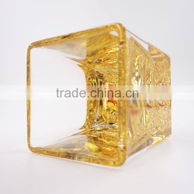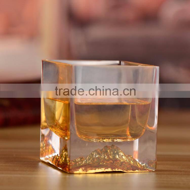 New Designed Crystal Square Shaped Whiskey Glassware Gold Tumbler Glass