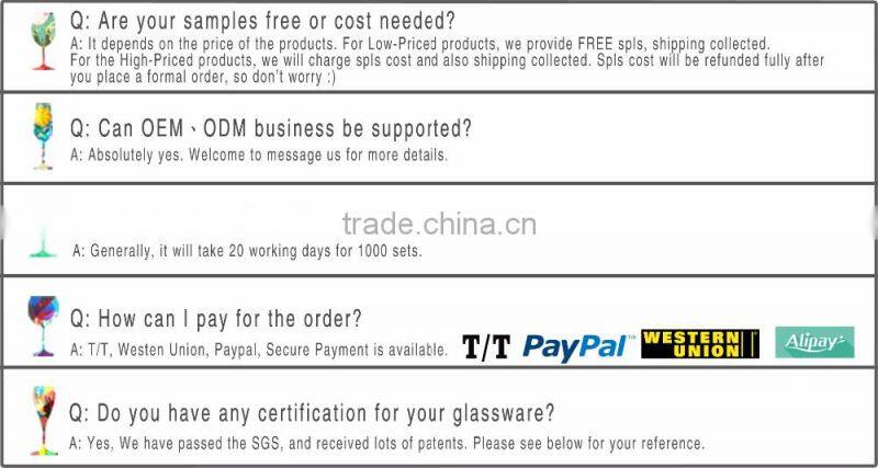 Our lead-free crystal glasses also meet the qualification of SGS International Food Safety Standard.