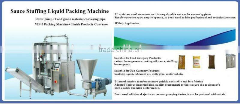 This sachet packing machine for sauce is suitable for packing various liquid and viscous food, medicines and chemical products and so on. Such as fruit salad, tomato sauce, honey, edible oil, seasoning, vegetable juice, lotus seed paste, sweet bean sauce and so on. And at the sam time, this non food category products can be packed as well, like cream, cleaning agent, lubricating oil, industrial paste and so on.