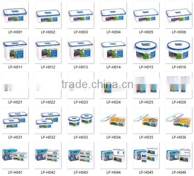 BPA FREE Airtight food storage container, 350ml, 400ml, 1100ml,1800ml, 2750ml etc, 4 side clip lock. Microwaveable and dishwasher safe.