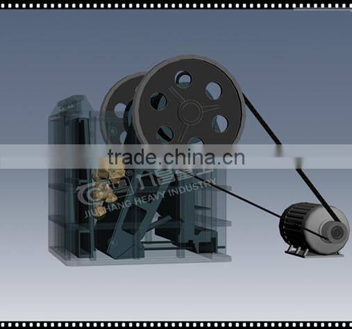 The motor power is transmitted through belt, driving the active jaw to do periodic motion towards the fixed jaw by the eccentric shaft. The angle between toggle plate and active jaw plate increases when the active jaw moves moves towards the fixed jaw. The active jaw moves conversly to the fixed jaw by pulling rod and spring. The materials will be crushed in this process, then the final crushed materials will be discharged from the outlet.