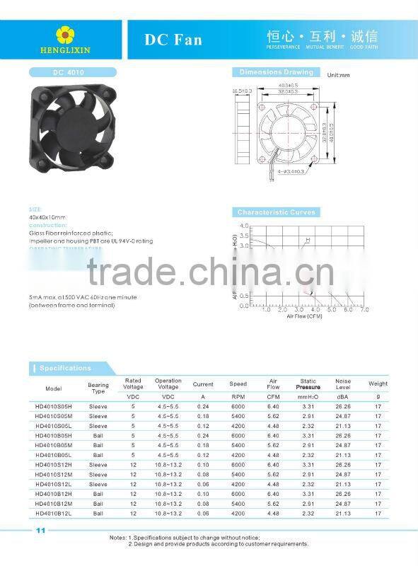 Ball bearing 4010 dc 12v mini fan1.Size: 40x40x10mm