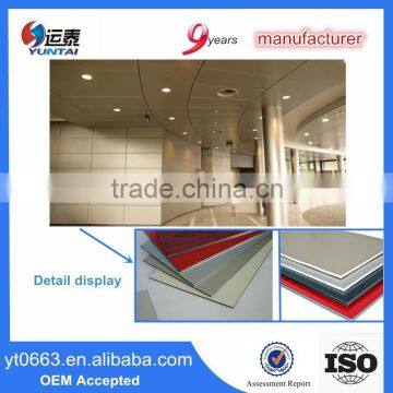 Aluminium composite panel is composed of a polyethylene core sandwied between two sheets of aluminium.And the surface of the aluminium-plastic composite panel is covered with a protective peel-off film.Our aluminium-plastic composite panel has distinguished features of super peeling strength,stron durability,fireproof,impact resistance with noise absorptive,multiple colors and coating evenness and it is easy to be processed. It can be widely used in galleries, exhibitions, saloons, offices, banks, hotels and many apartments.Other kinds of buildings: As ideal decorative materials for the outer-wall and inner-wall of buildings.Kitchen cabinets, billboards, signboards, tunels and subway interiors and others places.