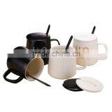 China Supplier Lovely Cartoon Ceramic Milk Cup for Lids With Lid & Spoon