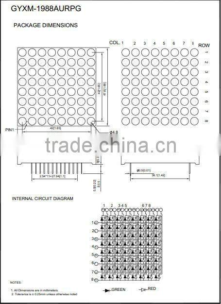 GYXM-1388/1588/1988/2388 LED Dot-matrix Display RGB 3.0/3.75/4.8/5.0 mm, 32mm x 32mm, 37.7mm*37.7mm, 48mm*48mm, 60.5mm*60.5mm , 8 *8