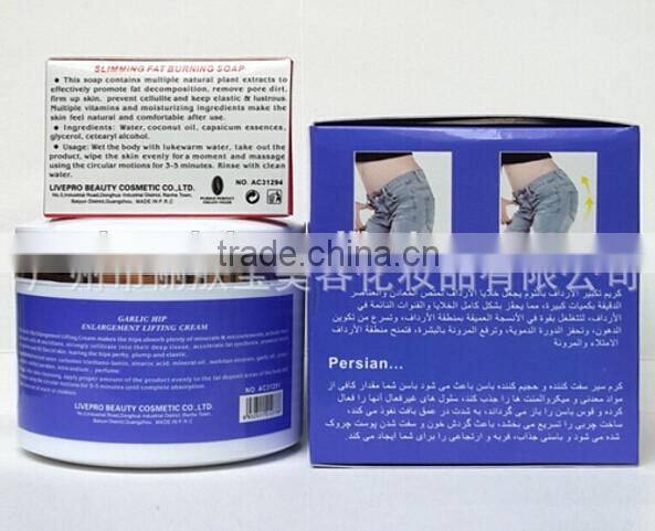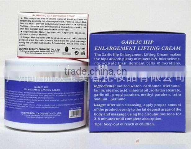 The garlic hip enlargement lifting cram makes the hips absorb plenty of minerals and microelements ,activate their dormant cells and meridians ,strongly infiltrate into their deep tissue ,accelerate fat synthesis ,promote blood circulation and lift placid shin ,leaving the hips perky ,plump and elastic