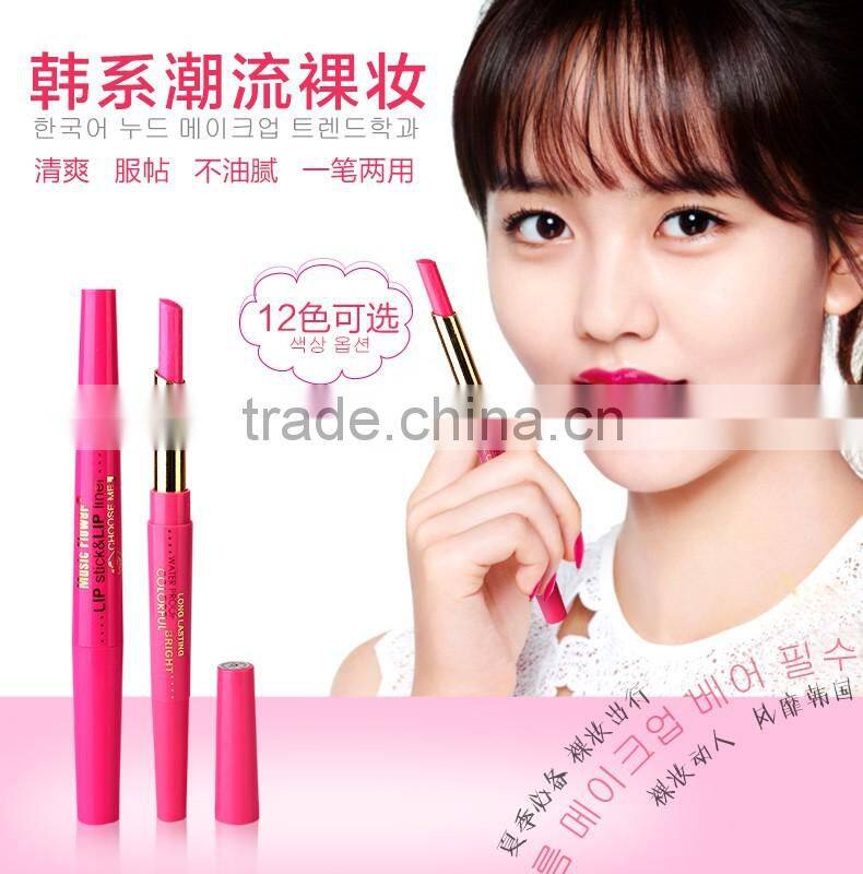 Music Flower 12 colors Lipstick&Lip Liner Waterproof Long Lasting lipstick