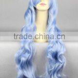 Synthetic Light Blue Long Kinky Curls Wig With Long Bangs for Woman N432