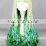Costume Synthetic Green Multi Color Silk Wave Wig for Halloween Party N3402