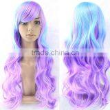 Fashion Lolita Heat Resistant Long Curly Light Blue Mixed Pink Hair Wig N414