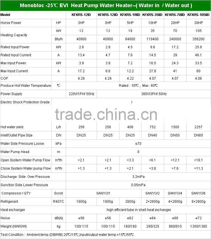This EVI heat pump is specially designed for chilly climate areas.Its core philosophy is to solve the users' house heating and hot water supply during the very cold climate.
