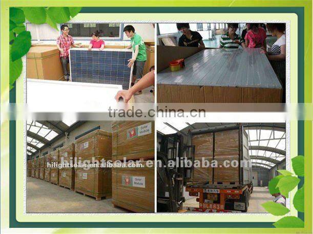 Shandong hilight-solar Co.,Ltd, is a manufacture of solar modules&systems, founded 2007, with 16000sqm mills and 78 workers, We have got all kinds of the certies such as TUV IEC CE CEC Golden-Sun and ISO etc, and exported to Germany/Nethenland/Australia/New Zealand/ Russia/Brazil etc. With more than $12Million's annual sales volume and 25years warranty, We can offer you the best products with competitive price and good after-sale service.