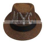Fashion Straw Fedora Hat With Sequins Logo for Men