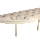 Antique French Style Upholstery Fabric Tufted Wooden Frame Bed End Stool