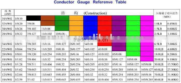 Conductor structure: single strand or bare stranded soft copper wire (conductor for tinned copper wire is in addition,)
