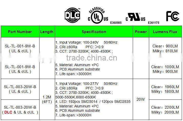 3 years warranty 20w t8 led lighting with UL DLC Approval