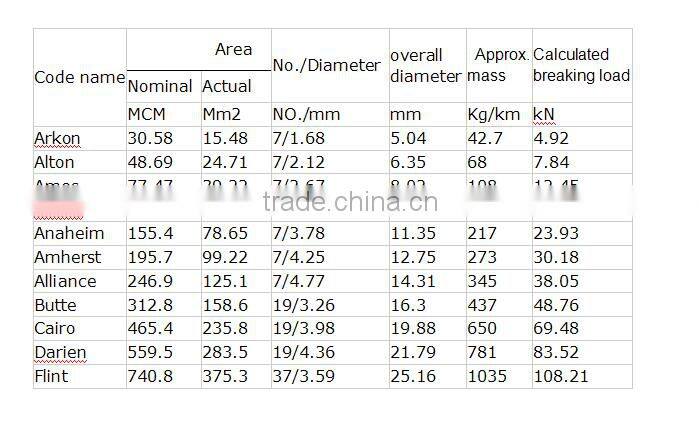 Overhead Conductor Aluminum/Alloy Conductor AAC /AAAC Cable ROSE 4AWG/ POPPY 1/0AWG, OXLIP 4/0AWG, ASTER 2/0AWG