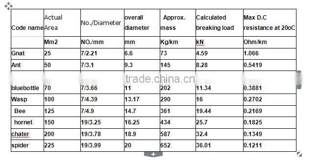 AAC Conductor/ BS EN 50182 Conductor/AAC Gnat/AAC MosQuito/AAC Ladybird/AAC Bluebottle/AAC Earwig