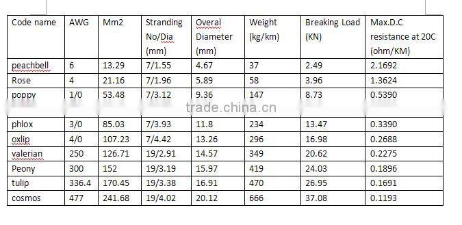 Overhead Conductor Aluminum/Alloy Conductor AAC /AAAC Cable ROSE 4AWG/ POPPY 1/0AWG, OXLIP 4/0AWG, ASTER 2/0AWG