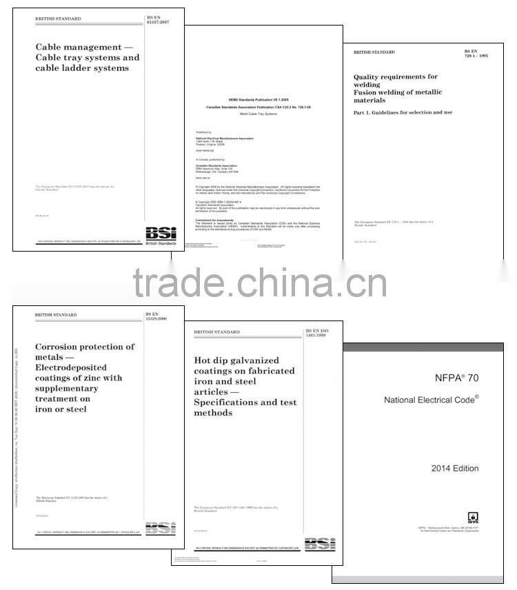 All of our wire mesh basket cable trays and accessories are designed and tested obey NEMA and IEC 61537.
