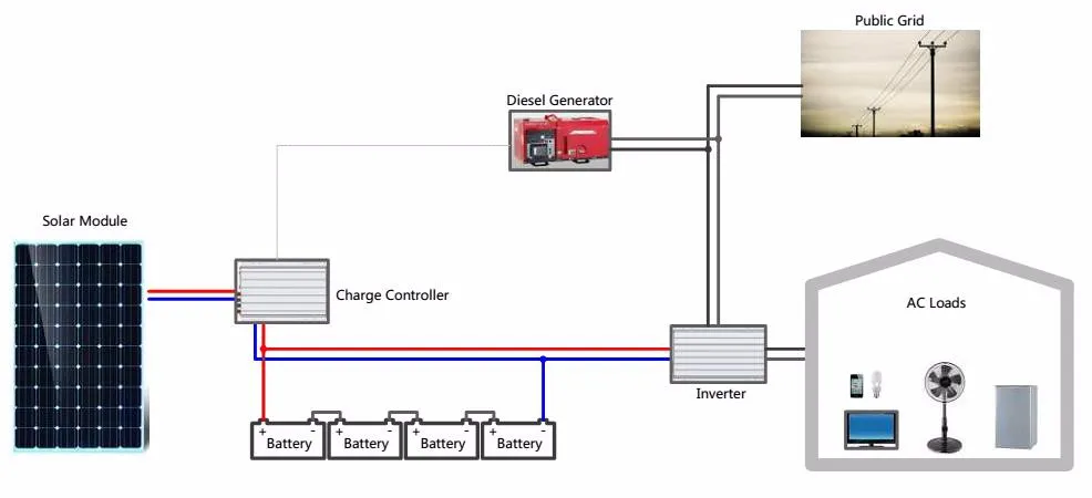 In addition to a standard photovoltaic system, a hybrid system usually includes a diesel generator and/or public grid as complement. When the solar energy is not sufficient due to bad weather condition, the system will turn to the generator/public grid to maintain the normal function of the loads.