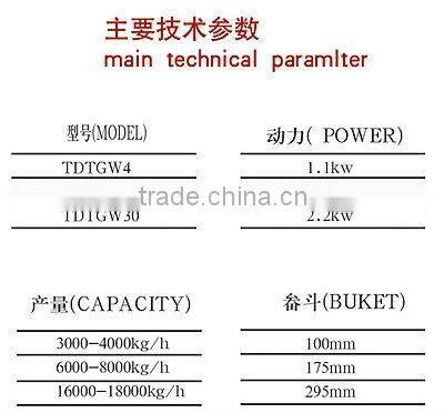 TDTG Series Slow bucket elevator vertical lifting machine is suitable for a variety of granular materials in grain, food, feed and other industries. The new lifting equipment is carefully designed by the Company on the basis of the introduction of foreign advanced technology. Technical parameters: