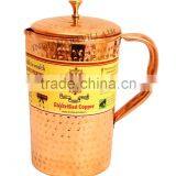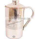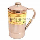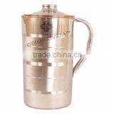 IndianArtVilla Handmade Luxury Steel Copper Jug Pitcher With Lid 1600 ML - Storage Drinking Water Home Hotel Restaurant Benefit