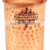 IndianArtVilla Pure Copper Small Hammered Glass Tumbler Cup 250 ML - Serving Water Home Hotel Restaurant Good Health Benefit