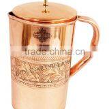 IndianArtVilla Handmade Designer Pure Copper Jug Pitcher With Lig 1300 ML - Storage Drinking Water Home Hotel Restaurant