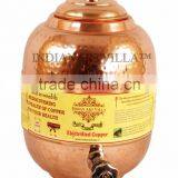 IndianArtVilla Handmade Pure Copper 18 Liter Water Pot Storage Water Tank With Tap Kitchen Home Good Health Benefits Yoga