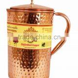 IndianArtVilla Handmade Designer Pure Copper Jug Pitcher With Lig 1300 ML - Storage Drinking Water Home Hotel Restaurant