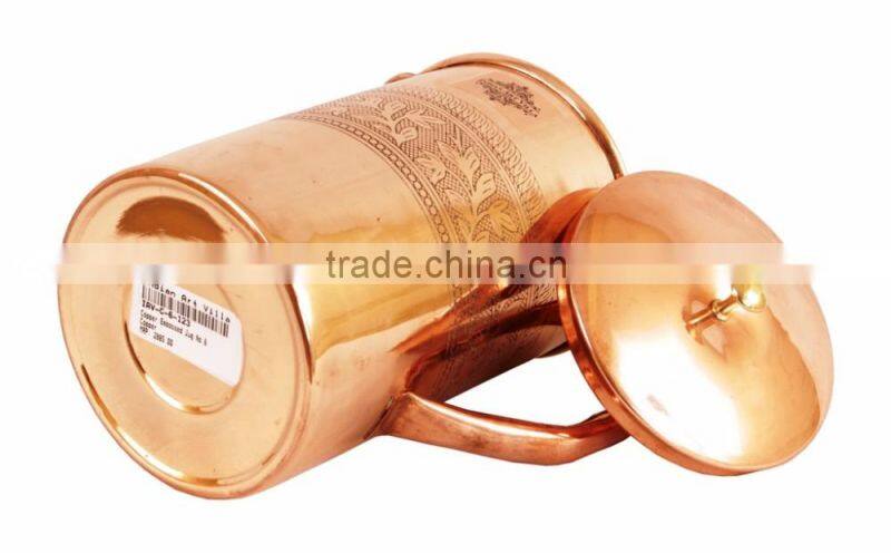 IndianArtVilla Designer Steel Copper Jug Pitcher 2000 ML - Storage Drinking Water Home Hotel Restaurant Good Health Benefit Yoga