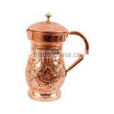 IndianArtVilla Handmade Pure Copper Designer Jug Pitcher 1500 ML - Storage Water Home Hotel Restaurant Benefit Yoga Ayurveda