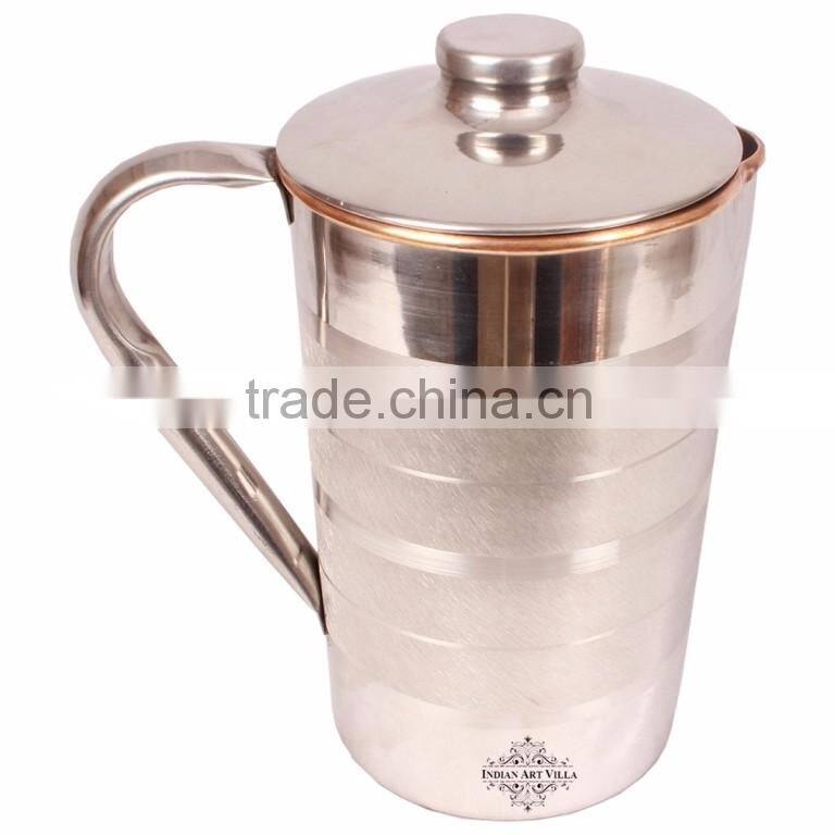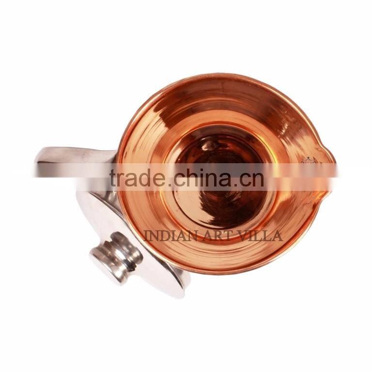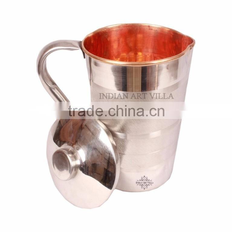 Handmade Steel Copper Jug Pitcher With Lid - 2000 ML Water Storage Good Health Benefits Yoga, Ayurveda