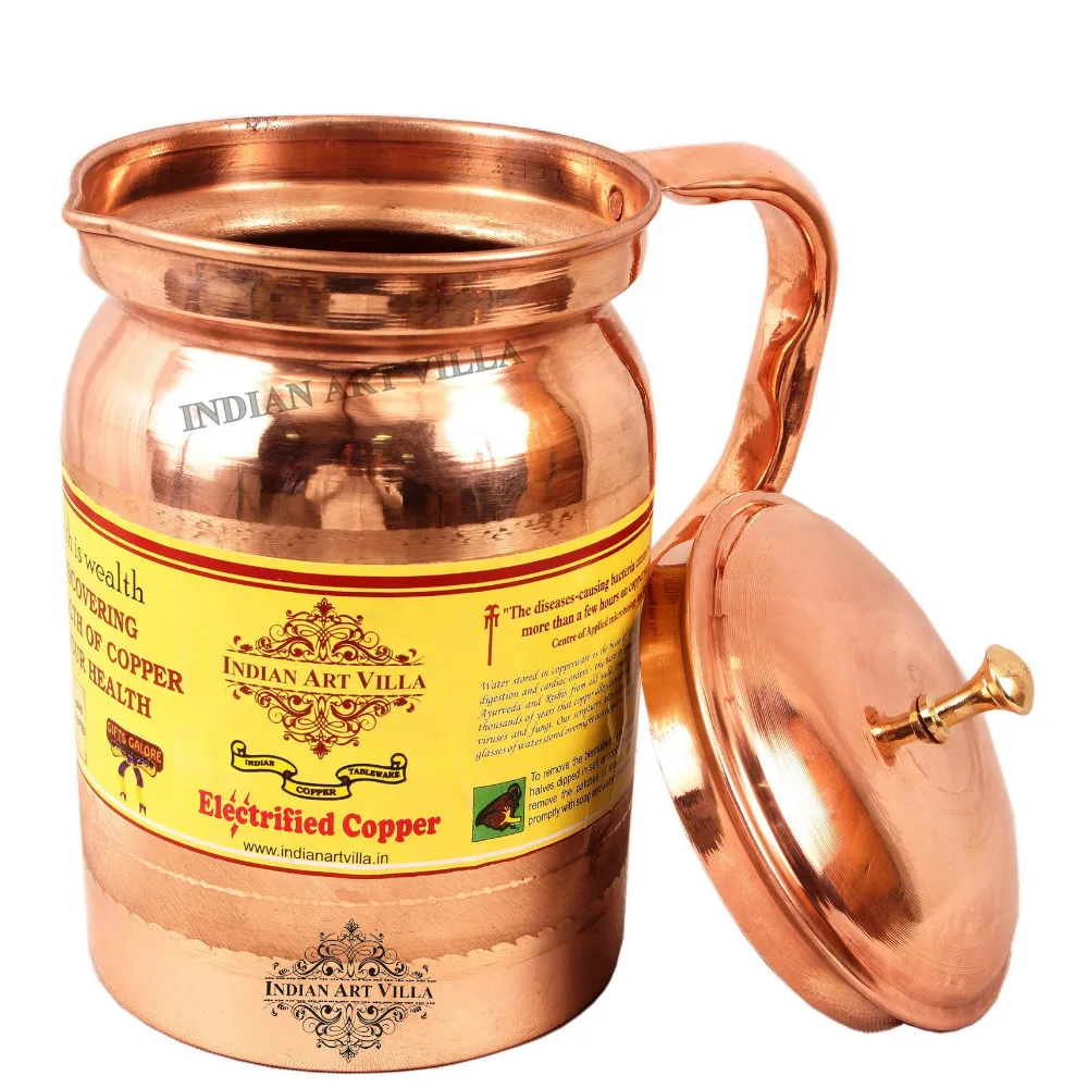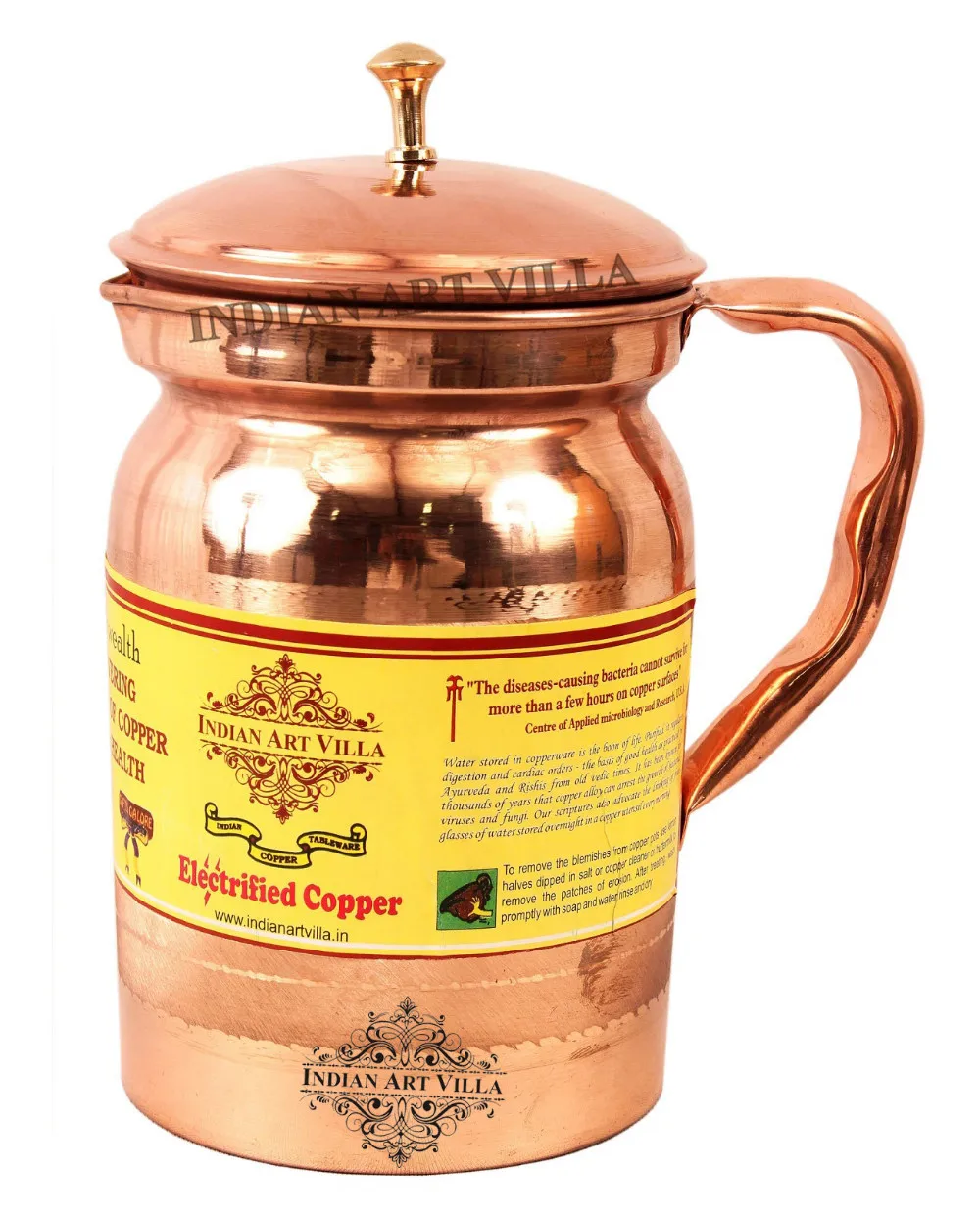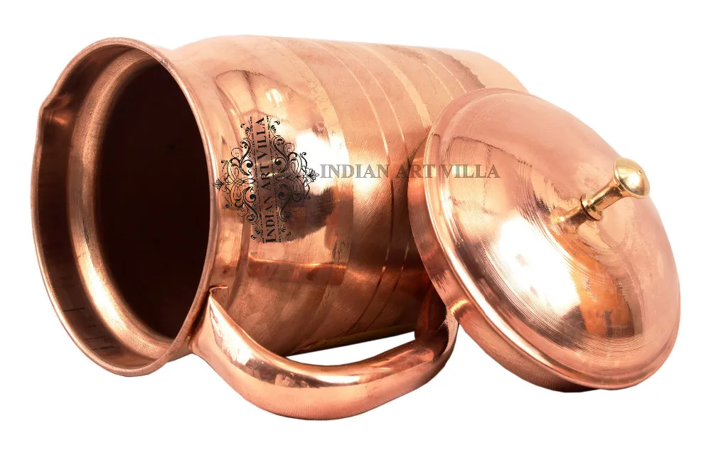 Indian Art Villa Copper Jug Pitcher 1300 ML Storage Serving Water Home Hotel Good Health Ayurveda