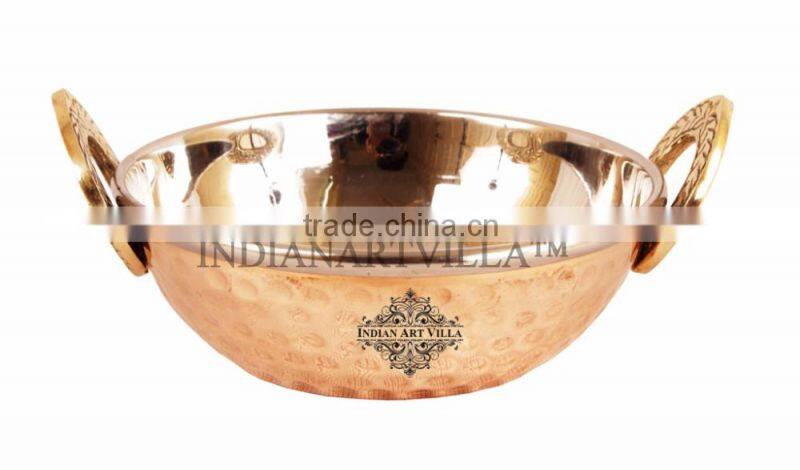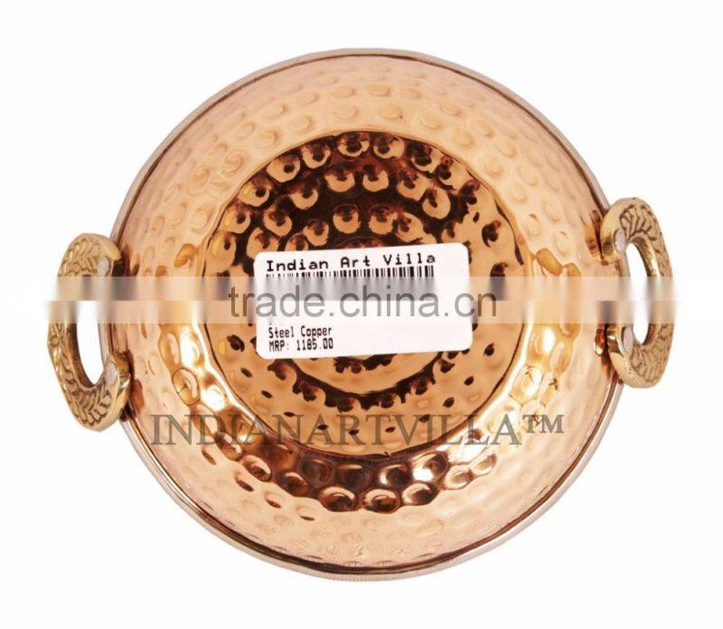 IndianArtVilla High Quality Steel Copper Serving Kadhai Kadai Karahi Wok 350 ML - Serving Indian Food Home Hotel Restaurant