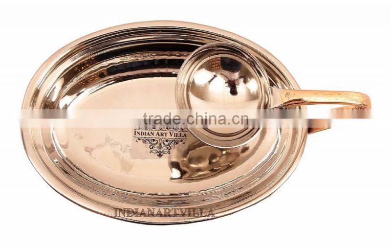 Home > Products > Table Ware > IndianArtVilla Steel Copper Platter With Attached Bowl 450 ML - Serving Dishes Indian Food Home Hotel Restaurant Tableware Serve