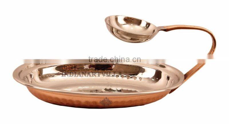 IndianArtVilla Steel Copper Platter With Attached Bowl 450 ML - Serving Dishes Indian Food Home Hotel Restaurant Tableware Serve
