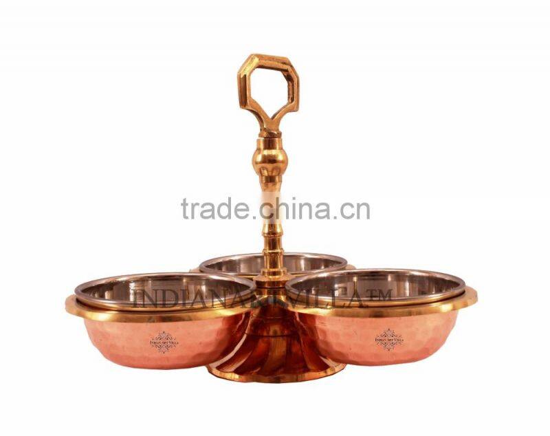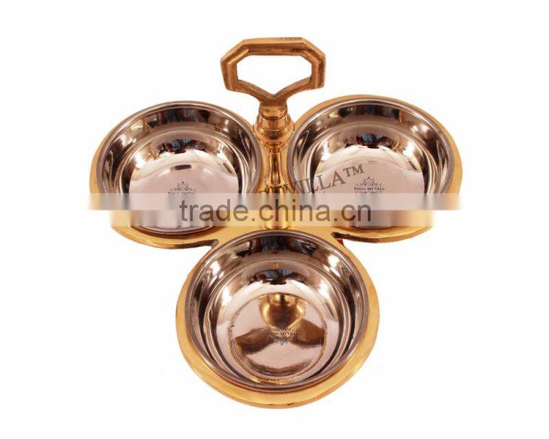 Indian Art Villa Steel Copper 3 Bowl Compartment Pickle Dish SERVING Restaurant Ware Hotel Home USe