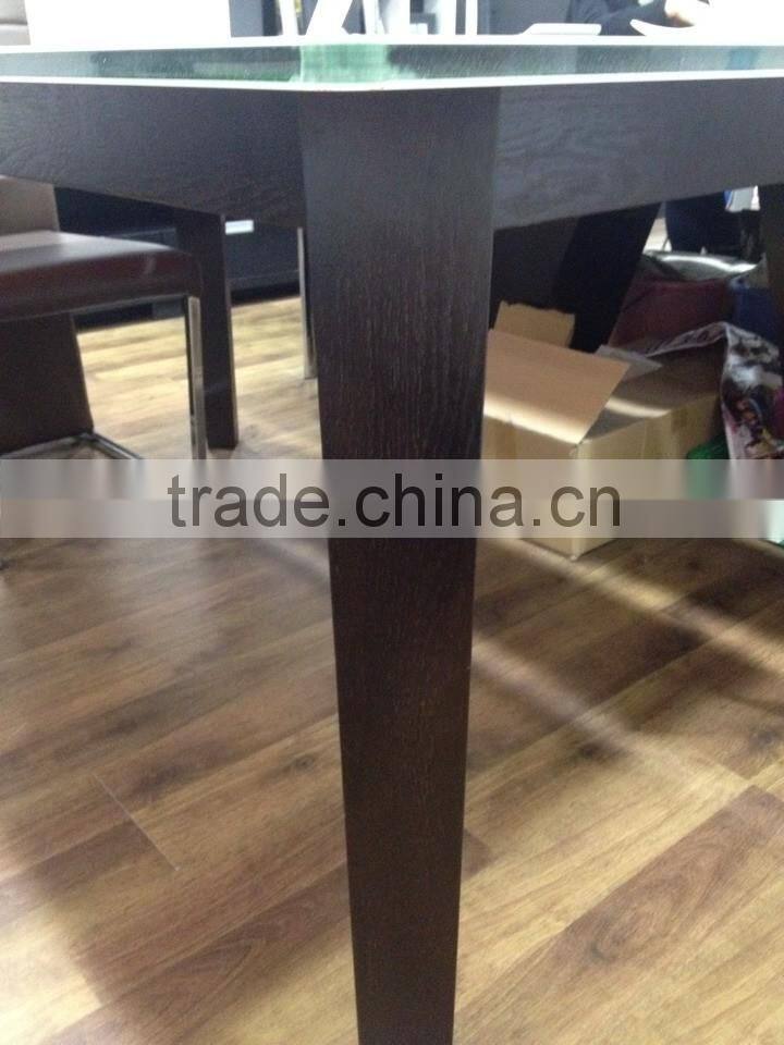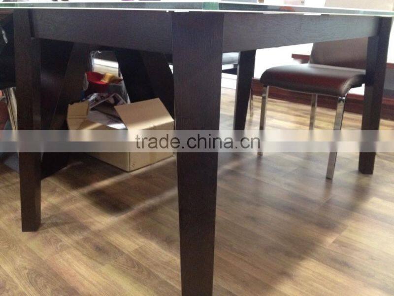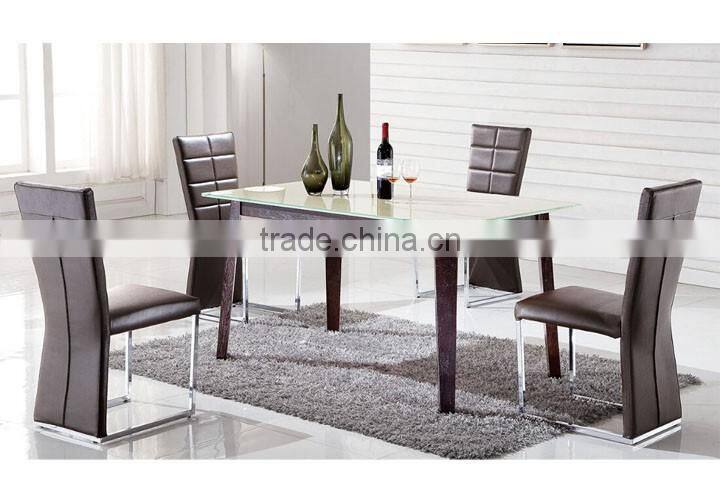 glass top wooden dining table leather chair