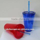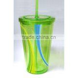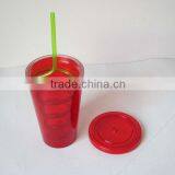 BPA Free Double Wall Acrylic Plastic Cup With Straw