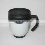 Double wall plastic promotional mug with customized logo printing, made of BPA free &eco-friendly material, good for promotionProduct Name: