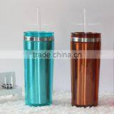 12oz Acrylic Plastic Outer Stainless Steel Straw Mug Tumbler With Straw