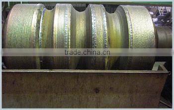 Roller rough machining---> Ultrasonic crack detection--> Preheat--> Automatic submerged Arc overlaying (keep heat)--> Thermal treatment after overlaying--> Roller surface finish machining--> Hardness measurement on each layers--> Ultrasonic crack detection-->Qualified and stored.
